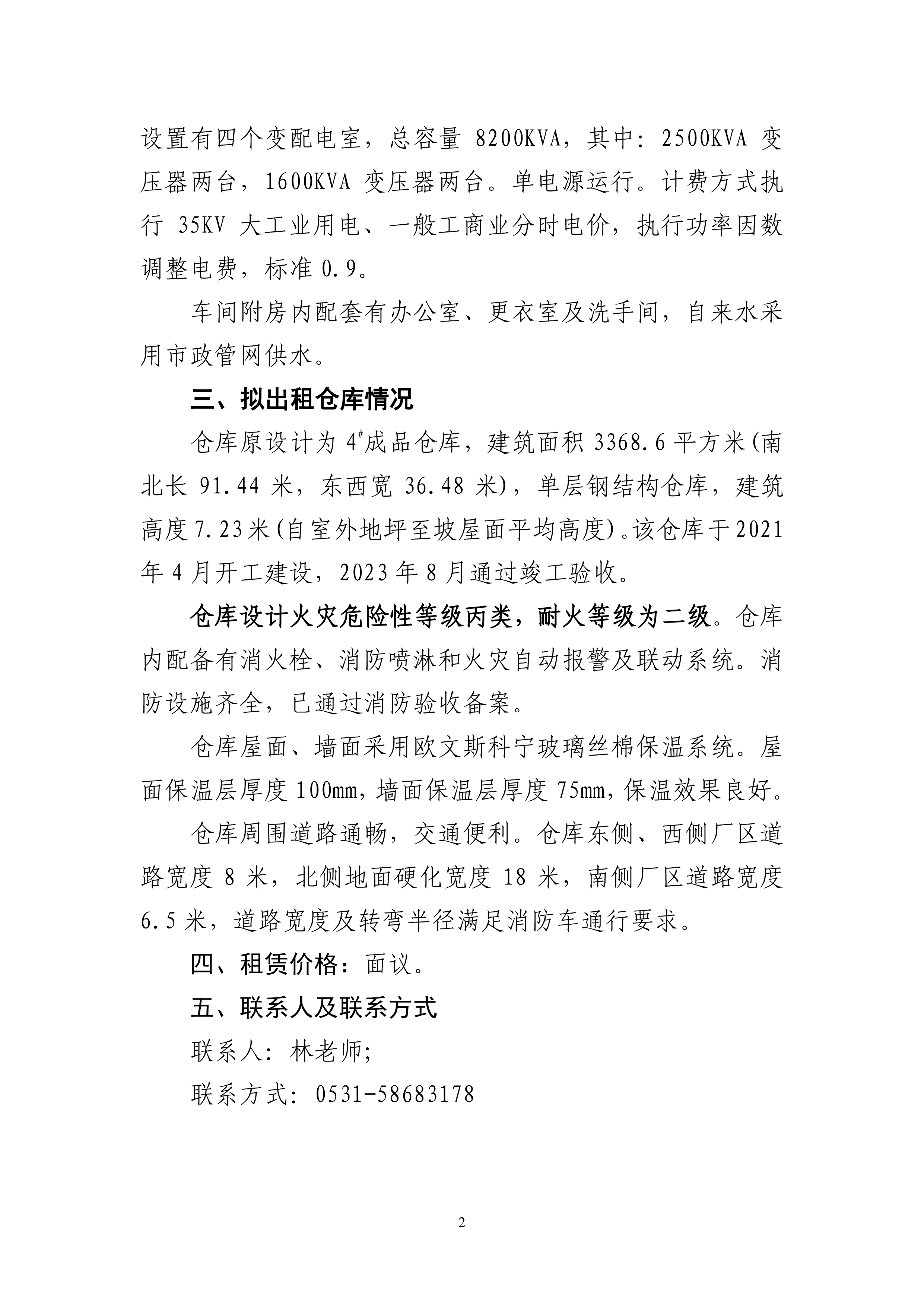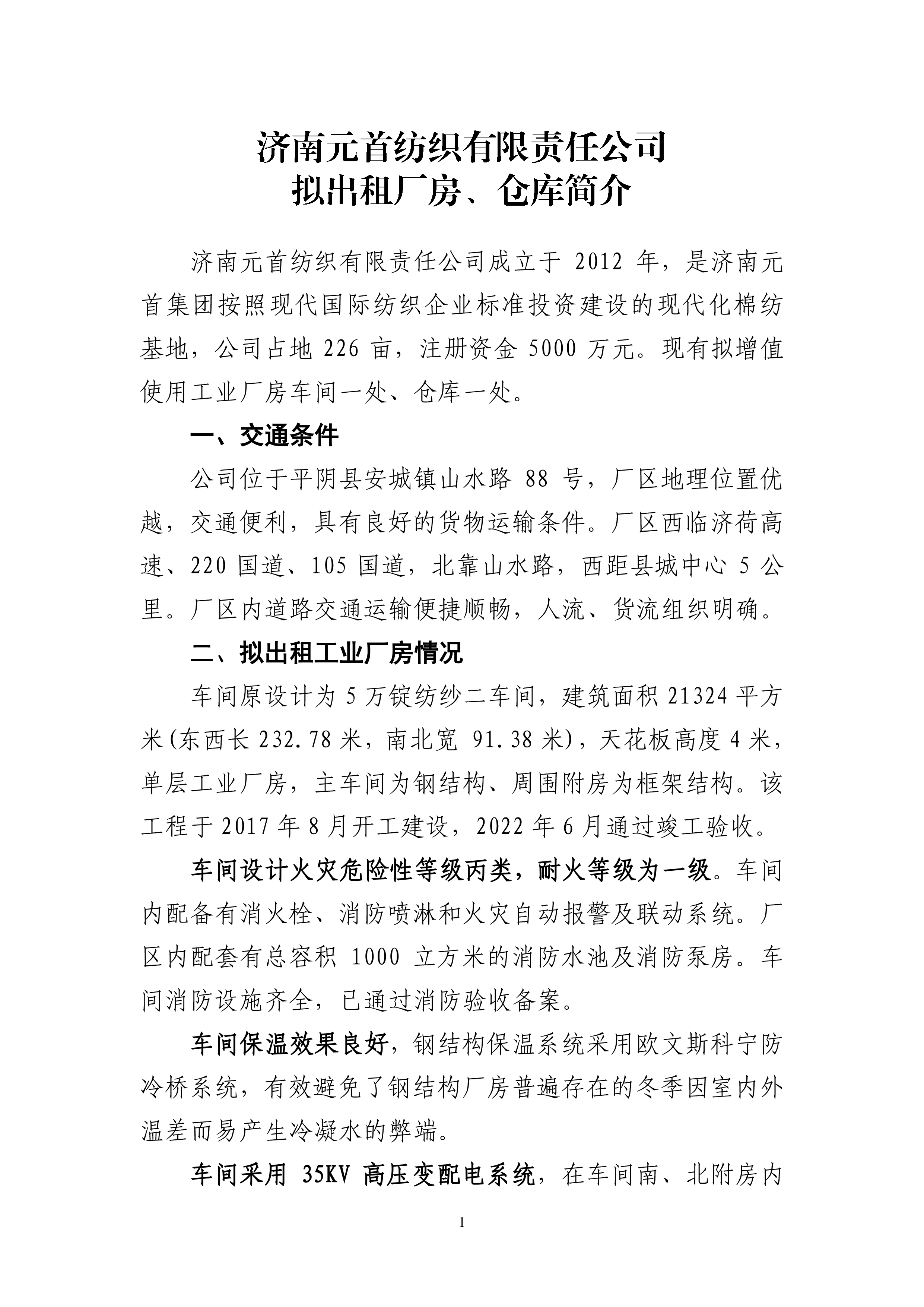 济南元首纺织有限责任公司拟出租厂房、仓库简介